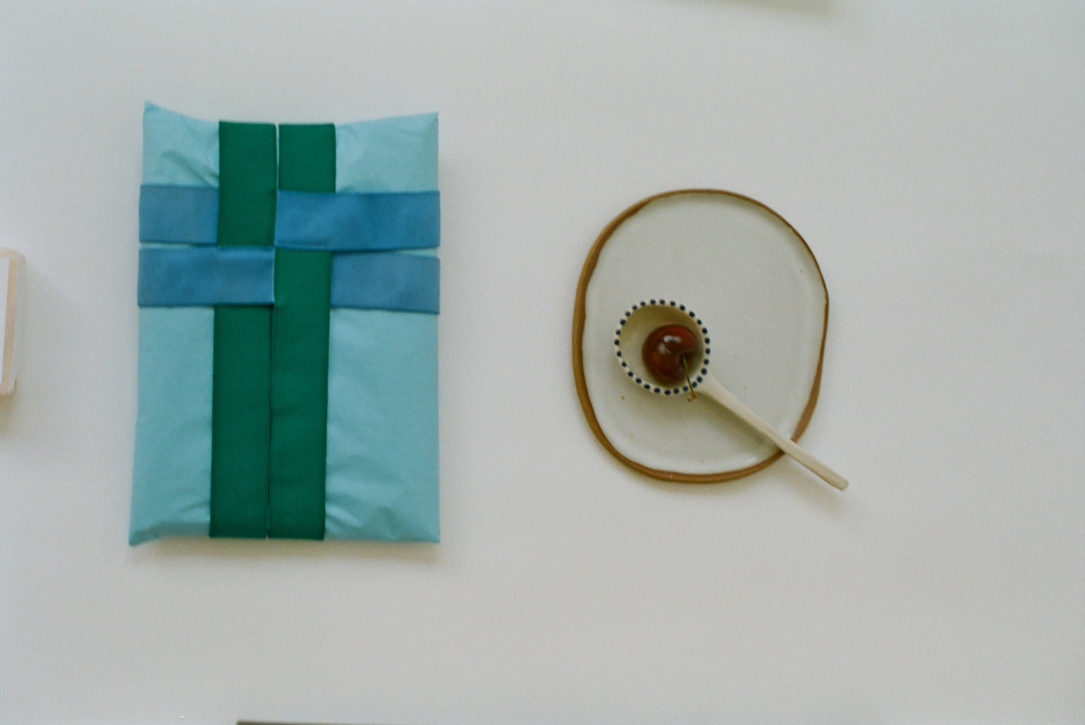 Your ceramics—two flat spoons and two plates—all feel a little undone, like a loose braid. Each plate has an imperfect pool of glaze covering its clay surface and the spoons have such clear (metaphorical) thumbprints of the human touch. What is it that attracts you to this kind of fluidity, free from the fine lines of uniformity?
