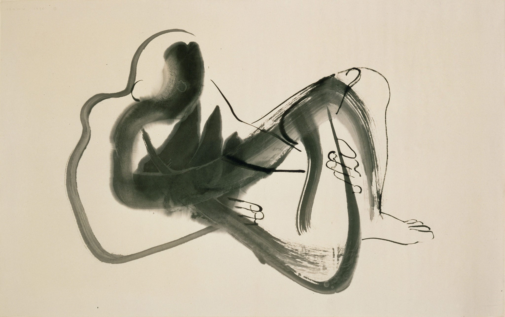 Lesser shared than his iconic Akari light sculptures, above is a paper work in sumi ink by Noguchi titled 'Peking Brush Drawing,' 1930.