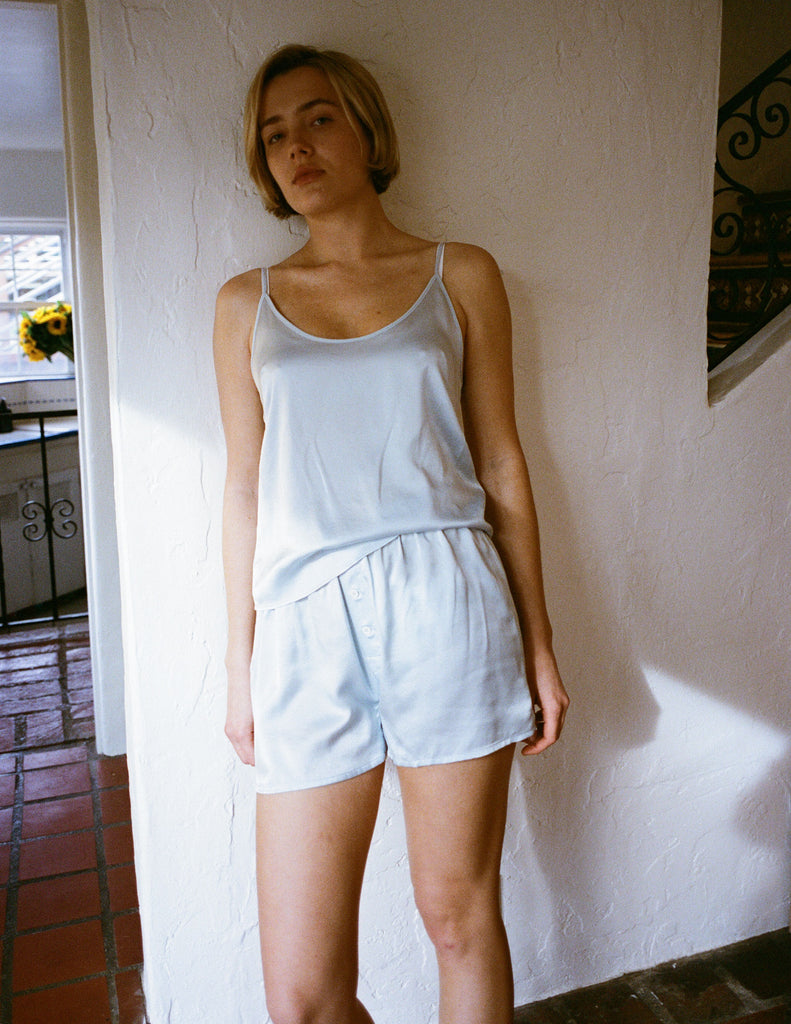 Cut in silk, we’ve updated this sartorial sleep favorite with quiet cutouts at the hips for a more modern feminine feel.
