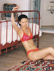 The harriet panty in persimmon orange a model in the yanelis bralette and harriet panty in persimmon orange a model in the yanelis bralette and harriet panty in persimmon orange woman wearing harriet panty in hibiscus while sitting against a bed