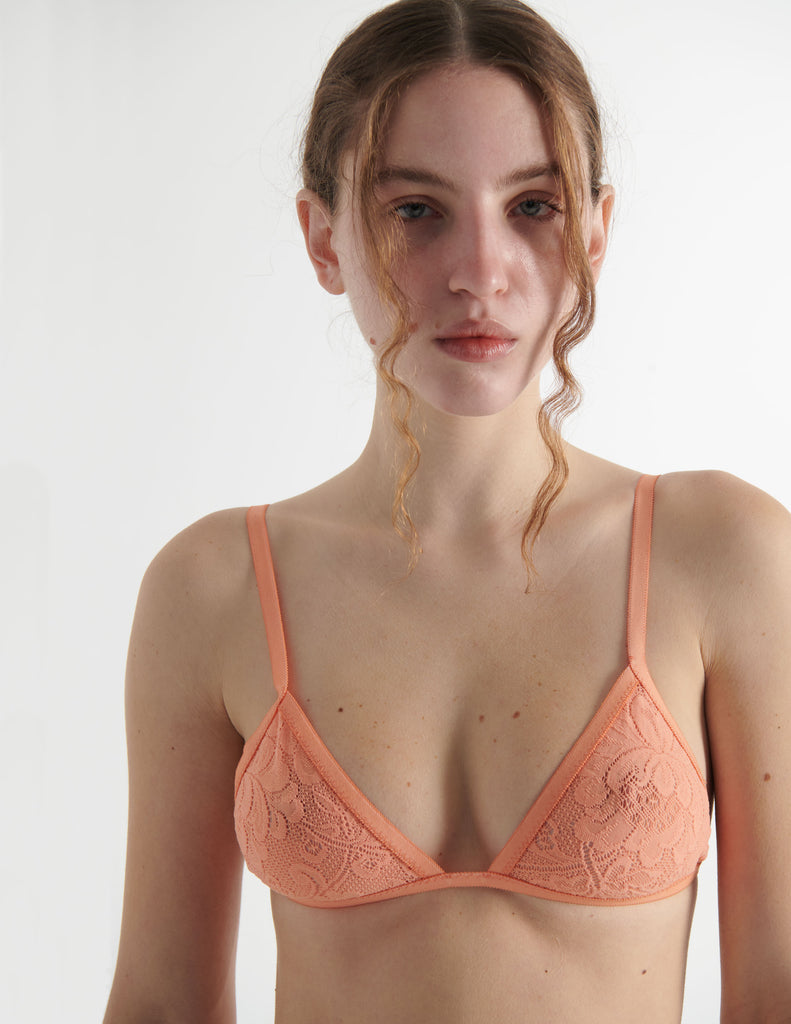 An uncomplicated triangle bralette cut from soft stretch French lace gives a look that’s understatedly chic. Wear it with the Tine Thong, Tris Panty or Imogen Hipster. See additional colorways.