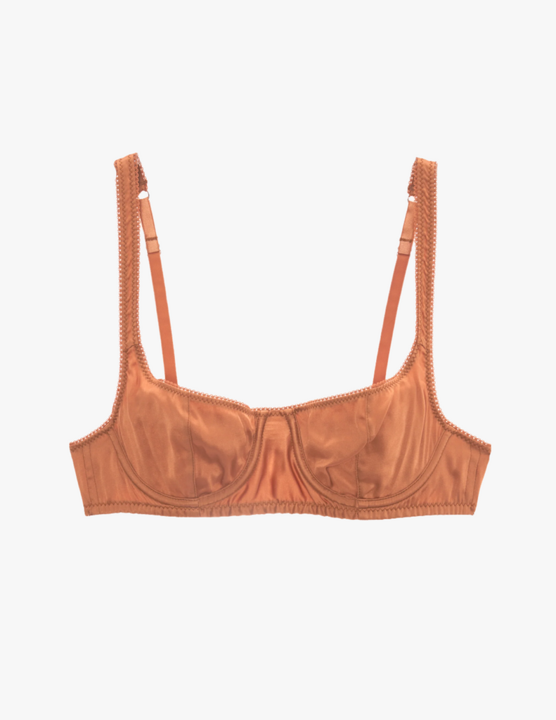 A classic balconette bra cut from shiny silk charmeuse. An underwire frame and adjustable straps offer stylish support. Pairs nicely with the Gwyneth Panty or Grier Thong. View other colorways.