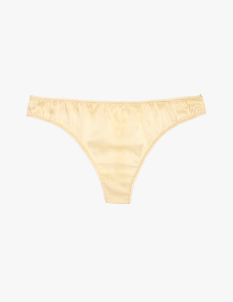 A mid-rise thong cut from lightweight stretch silk charmeuse that feels fine and smooth against your skin.