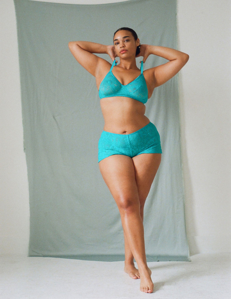 A casually chic lace lounge short for evenings spent at home. Cut from soft stretch French lace.