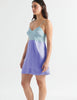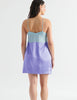light blue and periwinkle silk slip woman in light blue and periwinkle silk slip back of woman in light blue and periwinkle silk slip A model wearing the Holly Slip in light blue silk