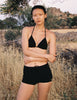 the nelle bikini top in black a model in the nelle bikini top and nadia bikini bottom in black a model in the nelle bikini top and nadia bikini bottom in black a model in the nelle bikini top and nadia bikini bottom in black Woman wearing a black nelle bikini top while standing outside.