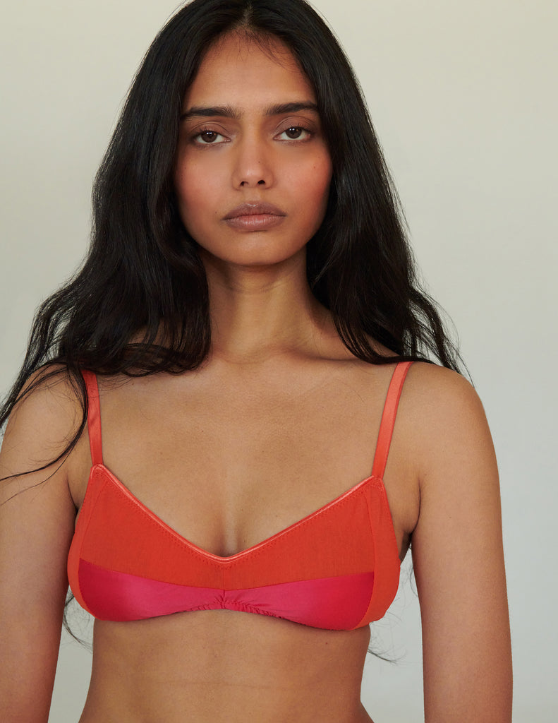 The Yanelis bralette is cut from a gauzy semi-sheer cotton crepe and accented with shiny silk charmeuse that provides lightweight support.